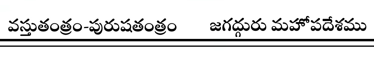 ఇలాంటి పురుష తంత్రం కాదు అద్వైతులు చెప్పే బ్రహ్మపదార్థం. అది కేవలం వస్తుతంత్రమే. వస్తు స్వరూపాన్ని అనుసరించేది వస్తుతంత్రమని గదా పేర్కొన్నాము. వస్తు స్వరూపమేమిటిక్కడ. జీవజగత్తులనే వాసన కూడా లేని అద్వితీయాఖండ రూపమైన చైతన్యం. అదే గదా బ్రహ్మమంటే. ఇలాంటిదీ ఆ వస్తు స్వరూపం. ఇలాంటి స్వరూపం పురుషతంత్రమెలా అవుతుంది. కర్మ అనే దాని కవకాశముంటే గదా పురుషతంత్రమయ్యేది. రెండవ పదార్ధమే లేదన్నప్పుడు కర్మ కవకాశమెక్కడిది. కర్మ అనగానే అది ఒకటి గాదు. కర్మ చేసే వాడొక్కడు - వాడు కర్త. చేయటానికి కావలసిన పరికరాలొకటి అది కారకం. చేయటమనే పని ఒకటి. అది కర్మ. అలా చేయటం మూలంగా మనం సాధించే దొకటి అది ఫలం.